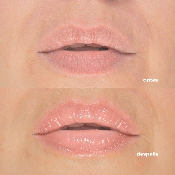 Es una máscara labial, con textura glossy, reparadora y regeneradora, ultra hidratante con nanopartículas de ácido hialurónico encapsuladas con aceite de ricino (si, leiste bien!); aceite de jojoba y peptidos voluminizantes y reafirmantes de triple acción. Brinda hidratación y reparación intensiva. El uso continuo mejora los resultados.