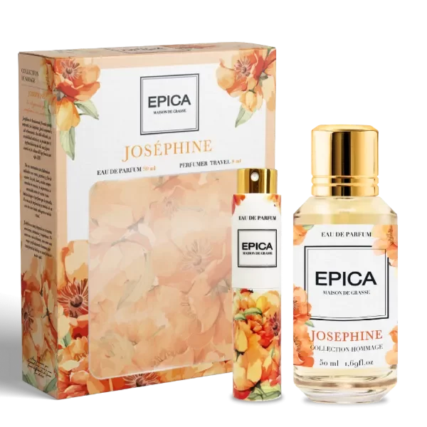 Inspirada en la delicada y artística Joséphine de Beauharmais, esta fragancia es juguetona y seductora, celebra la coquetería con un giro moderno y chispiante. Se abre con una explosión dulce y jugosa de pera, que aporta un toque de frescura y diversión desde el primer instante. En el corazón, un bouquet de gardenia se despliega con feminidad suave y cremosa, equilibrando la dulzura frutal con un carácter floral envolvente y elegante